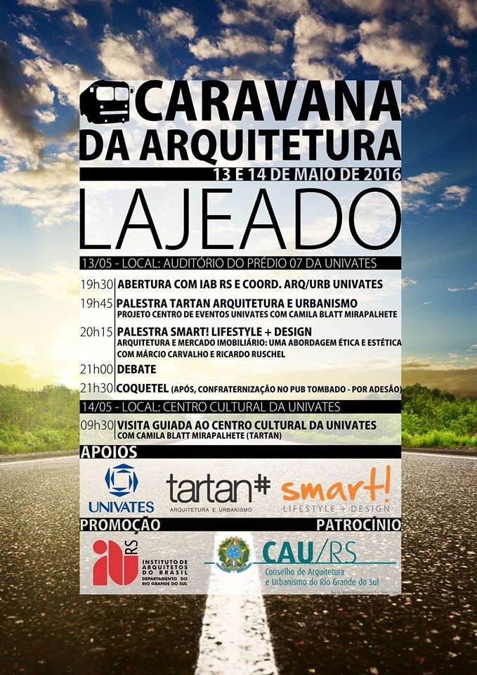 O Instituto de Arquitetos do Brasil (IAB RS) promove nos dias 13 e 14 de maio a Caravana da Arquitetura na Univates em Lajeado. Confira a programação!
