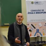 O conselheiro Rui Mineiro, Coordenador Adjunto da Comissão de Ética e Disciplina (CED) do CAU/RS, mediou um bate-papo com um grupo de alunas formandos da Pontifícia Universidade Católica do Rio Grande do Sul (PUCRS) na última sexta-feira (17/06).