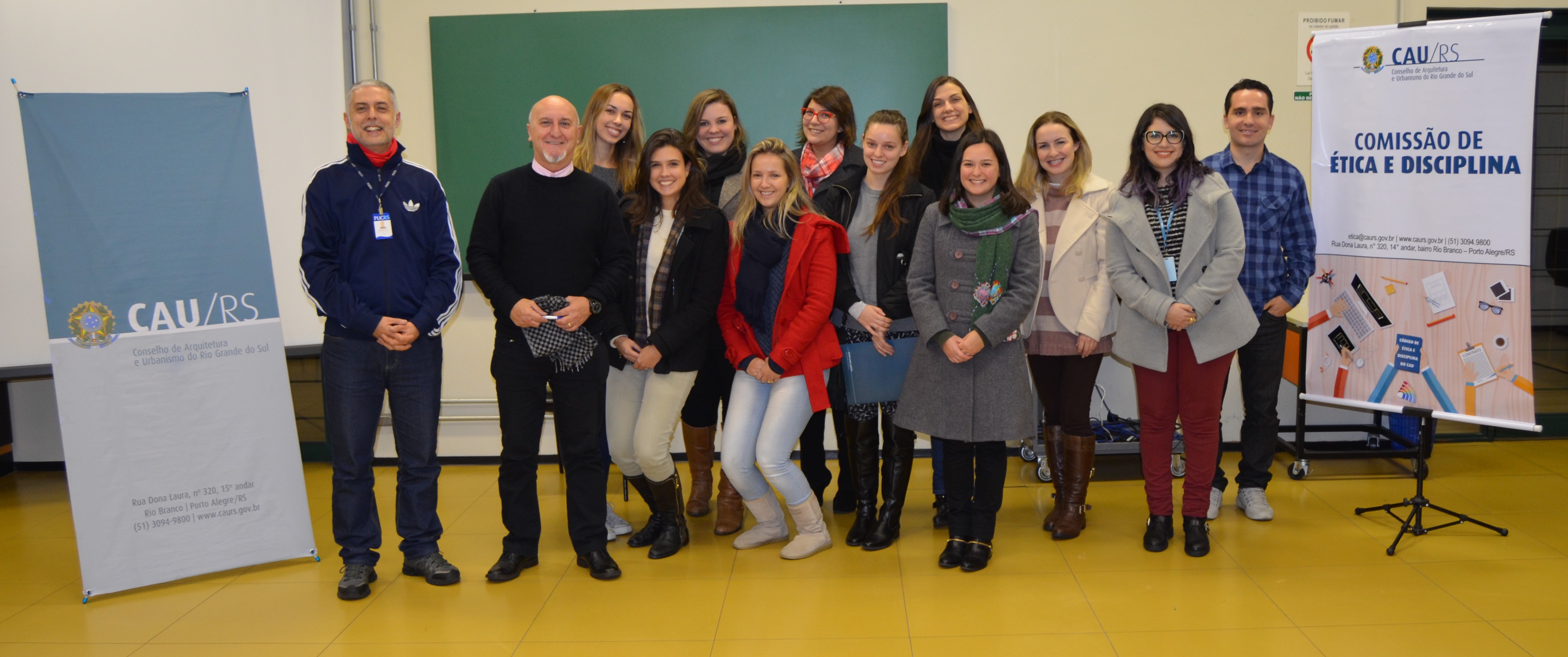 O evento teve como objetivo a aproximação com o universo acadêmico através da divulgação e discussão do Código de Ética e Disciplina Profissional. O encontro também contou com a participação do professor arquiteto e urbanista Paulo Ricardo Bregatto. O frio fez com que o grupo se aproximasse ainda mais e tivesse um bate-papo informal e produtivo, pois além da apresentação do Código, também foi abordada a importância da atuação ética do profissional para a sociedade.