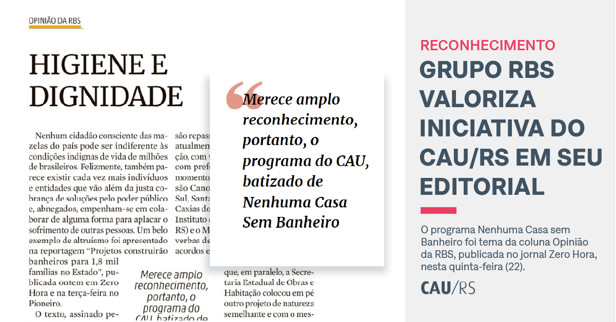 O programa Nenhuma Casa sem Banheiro foi tema da coluna Opinião da RBS, publicada no jornal Zero Hora, nesta quinta-feira (22).