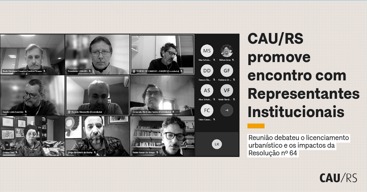 O coordenador da Comissão de Política Urbana e Ambiental (CPUA-CAU/RS), Pedro Araújo, lembrou o documento elaborado em conjunto com o CAU Brasil e que traz 12 pontos cruciais sobre as regras de licenciamento. “É nosso posicionamento oficial sobre o assunto e precisamos transformá-lo em nota pública.” Clique aqui para ler o documento na íntegra.