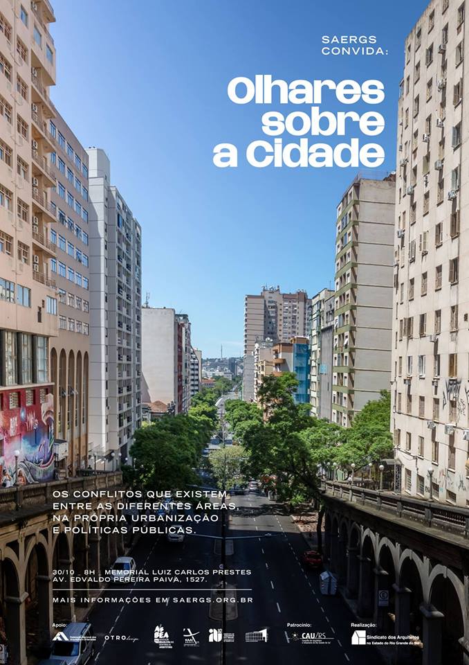 O Sindicato dos Arquitetos no Estado do Rio Grande do Sul (SAERGS) promove no dia 30 de outubro o Seminário Olhares Sobre a Cidade. O evento é gratuito e debaterá políticas públicas de planejamento urbano conectadas com o interesse da população. Será no Memorial Luiz Carlos Prestes, em Porto Alegre, a partir das 8h, com palestras e debates durante todo o dia.