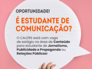 Vaga de estágio no Escritório Regional do CAU/RS em Pelotas