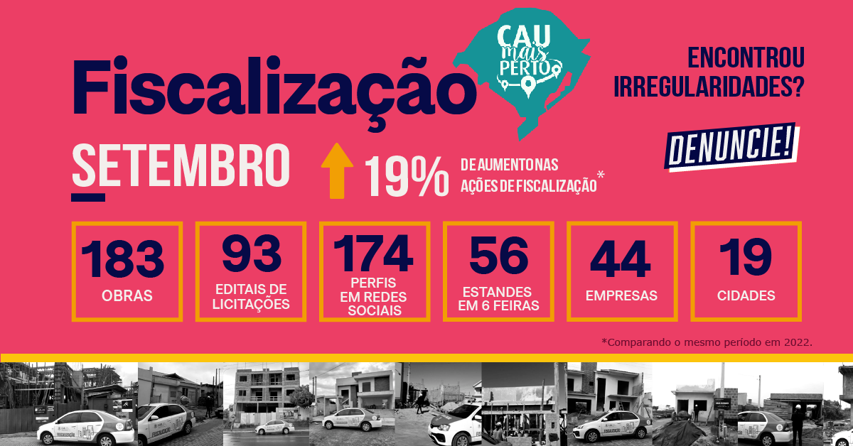 - 183 obras em 19 cidades fiscalizadas (Arroio Grande, Pelotas, Tapes, São Lourenço do Sul, Caçapava do Sul, Campos Borges, Salto do Jacuí, Fortaleza dos Valos, Quinze de Novembro, Ibirubá, Colorado, Selbach, Porto Alegre, Novo Hamburgo, Santiago, São Francisco de Assis, Tupanciretã, Santa Maria e Caxias do Sul).