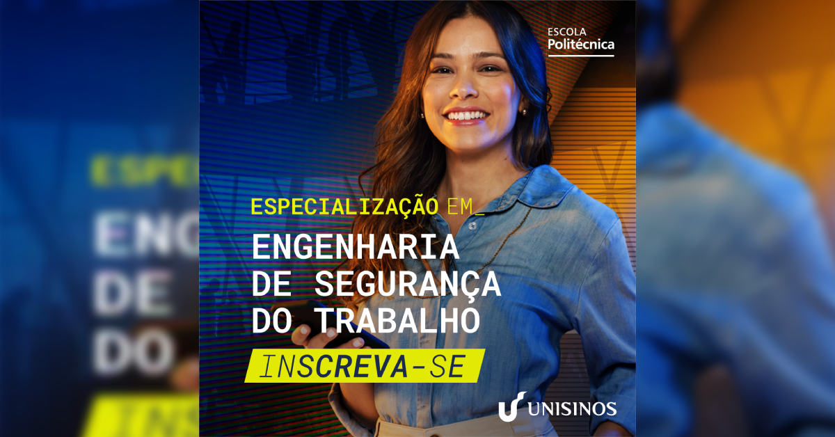 A Universidade do Vale do Rio dos Sinos (Unisinos) abriu uma nova turma para o curso de Especialização em Engenharia de Segurança do Trabalho. As aulas são presenciais e iniciam no dia 4 de abril de 2022. Matrículas efetuadas até o dia 31 de janeiro garantem 20% de desconto.