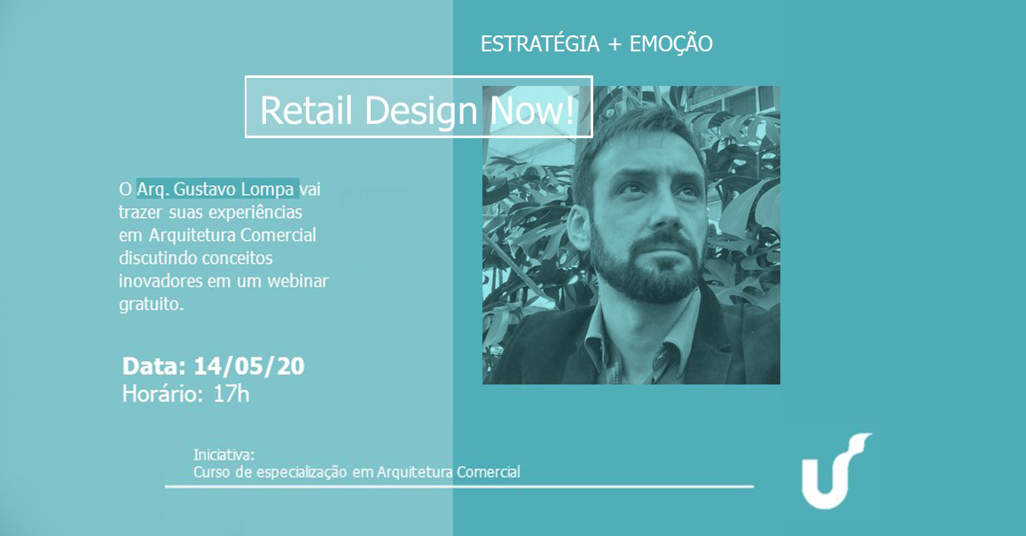 O curso de especialização em Arquitetura Comercial da Unisinos promove na próxima quinta-feira (14/05) a webinar Retail Design Now, com o arquiteto e urbanista Gustavo Lompa Nunes. O curso é gratuito e aberto para arquitetos e estudantes de Arquitetura e Urbanismo. As inscrições devem ser realizadas online.